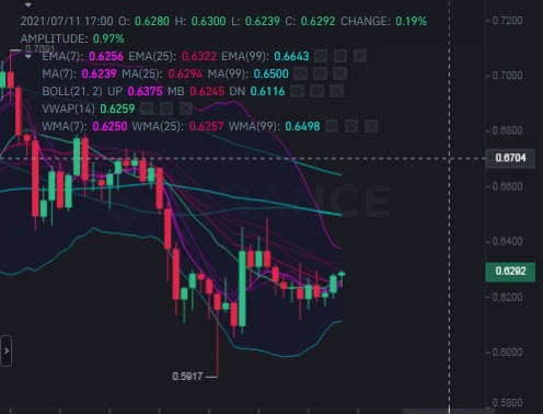 The Ripple XRP price is consolidating in a narrow range, with a test of the bearish 21-Simple Moving Average at $0.6247 now underway.