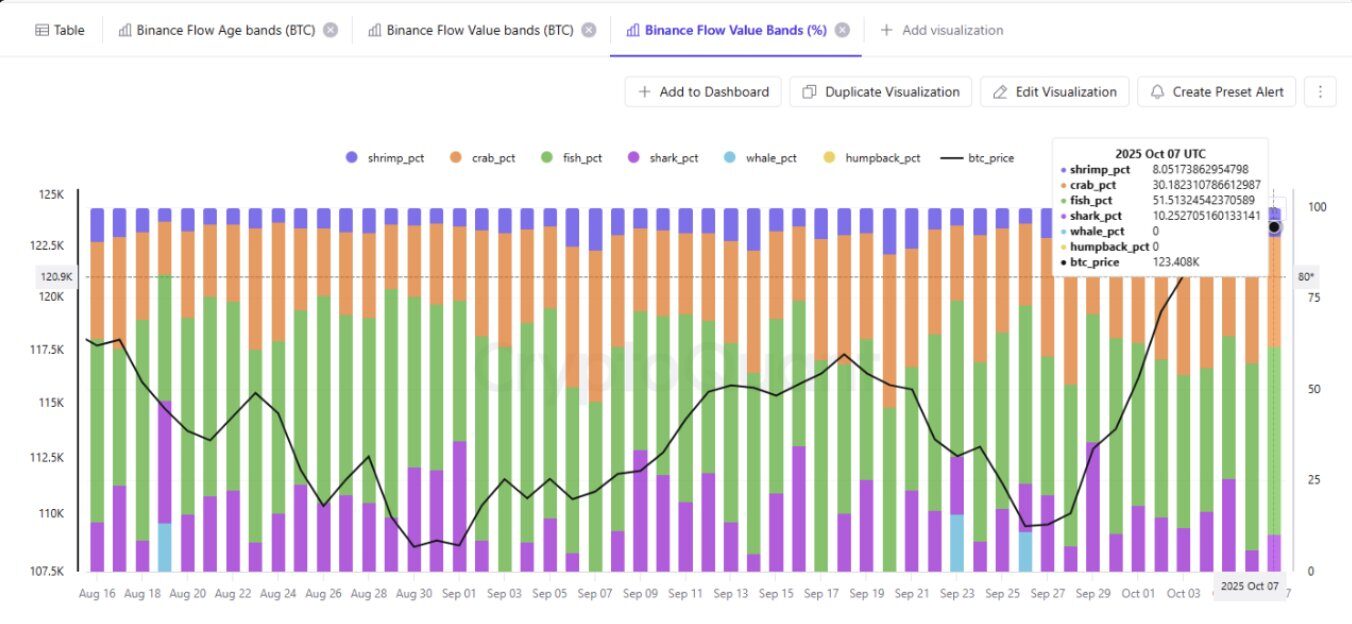 A CryptoQuant adatai szerint a legnagyobb eladási nyomást a shrimp (1 BTC alatti tárcák, a kisrákok), a crab (1–10 BTC-s tárcák, a rákok) és a fish (50–100 BTC halak) kategóriák hozták létre. Ezek a kisebb befektetők összesen több mint 6 700 bitcoint adtak el a mostani korrekció során – ami jelzi, hogy a profitrealizálás inkább a lakossági szereplők körében volt jellemző.