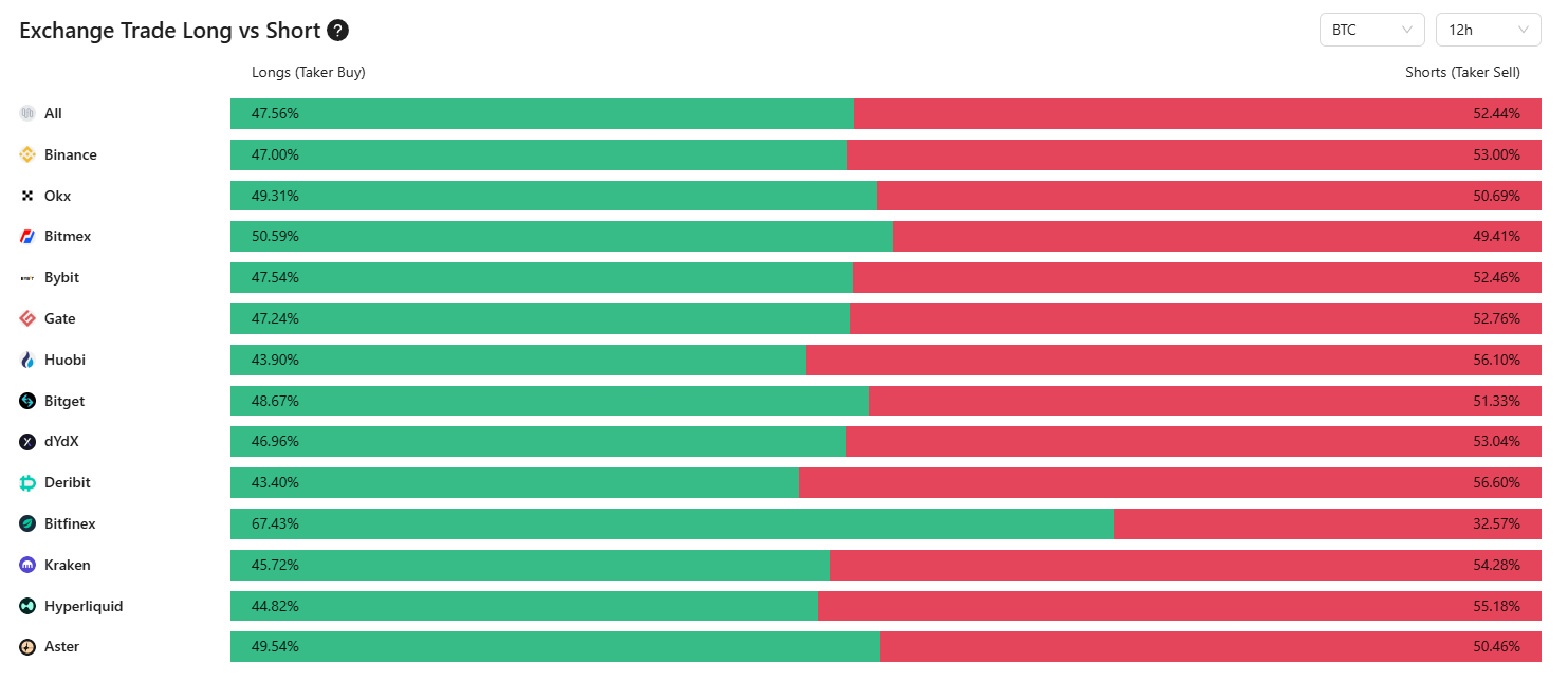 A piaci hangulat ennek megfelelően rövid távon óvatosabbá vált. A CoinAnk szerint jelenleg a tőzsdéken lévő Bitcoin-pozíciók több mint 52%-a short, vagyis az árfolyam esésére számítanak, míg 47% továbbra is long pozícióban van.