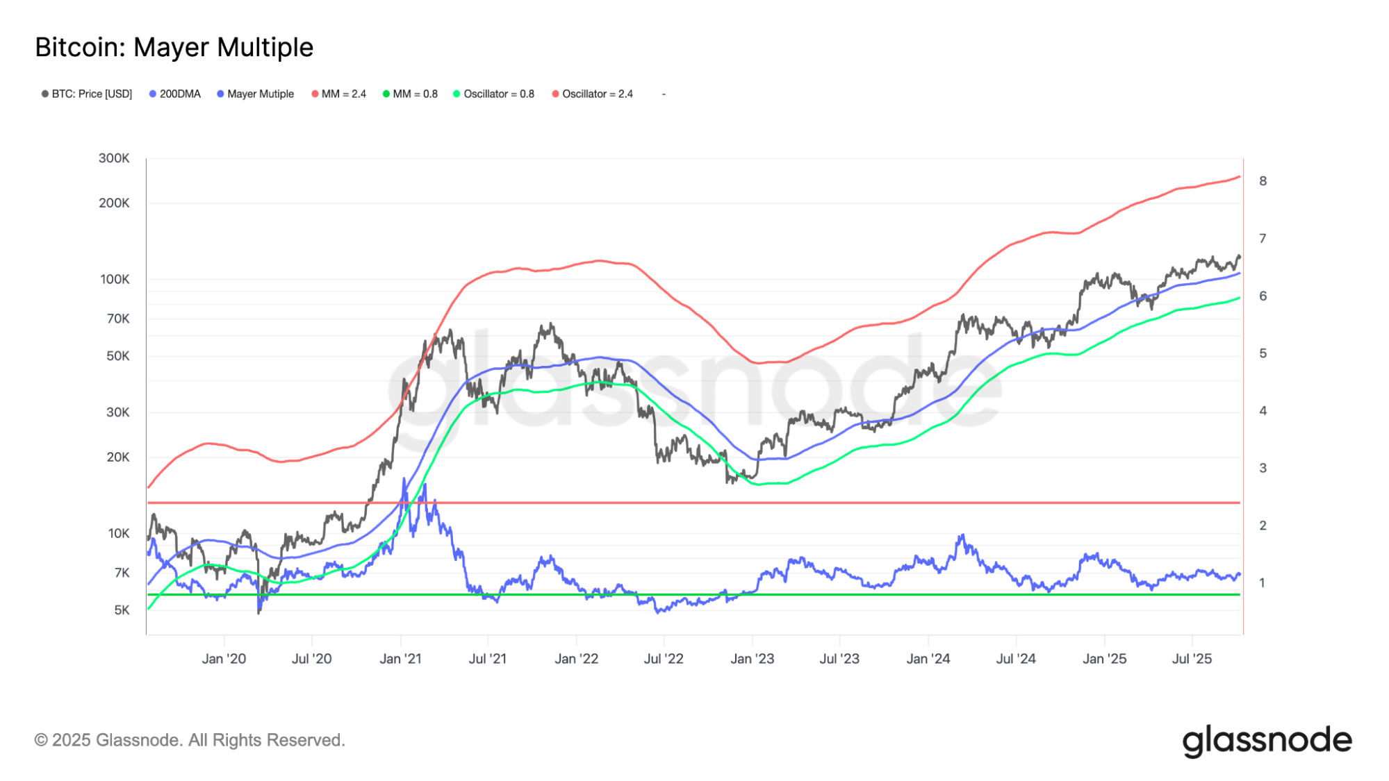 „a Bitcoin új csúcson van, de a Mayer multiplikátor még mindig jéghideg a piac”.